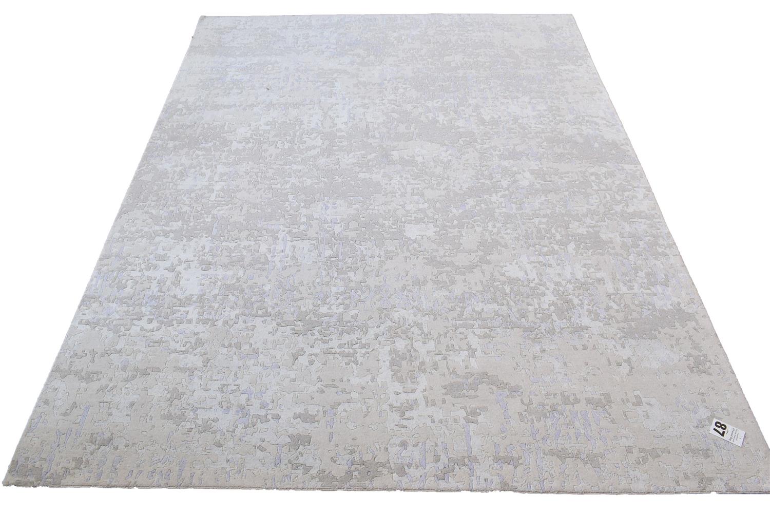 A BRAND NEW MODERN NEPALI HAND KNOTTED CARPET, SOLID AND DENSE WOOL PILE AND SILK TEXTURE IN PRISTINE CONDITION, MODERN ALL OVER ABSTRACT DESIGN IN TONES OF CREAM, BEIGE AND MAUVE, SIZE 361 X 273 CM, ORIGIN INDIA, RRP $7,200