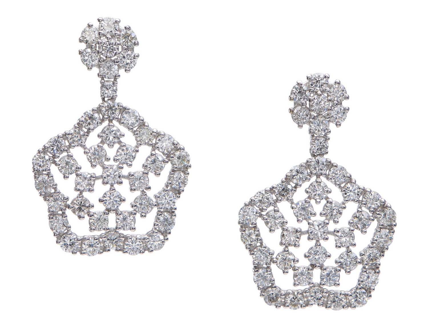 The earrings present in excellent condition. Each earring comprising 1.65cts of diamond. Total diamond weight for both earrings is 3.33cts.