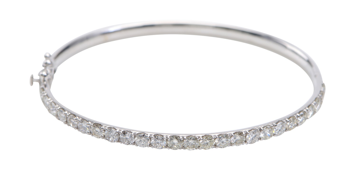The hinged bangle set with twenty five round brilliant cut diamonds totalling 4.22cts, in 18ct white gold.