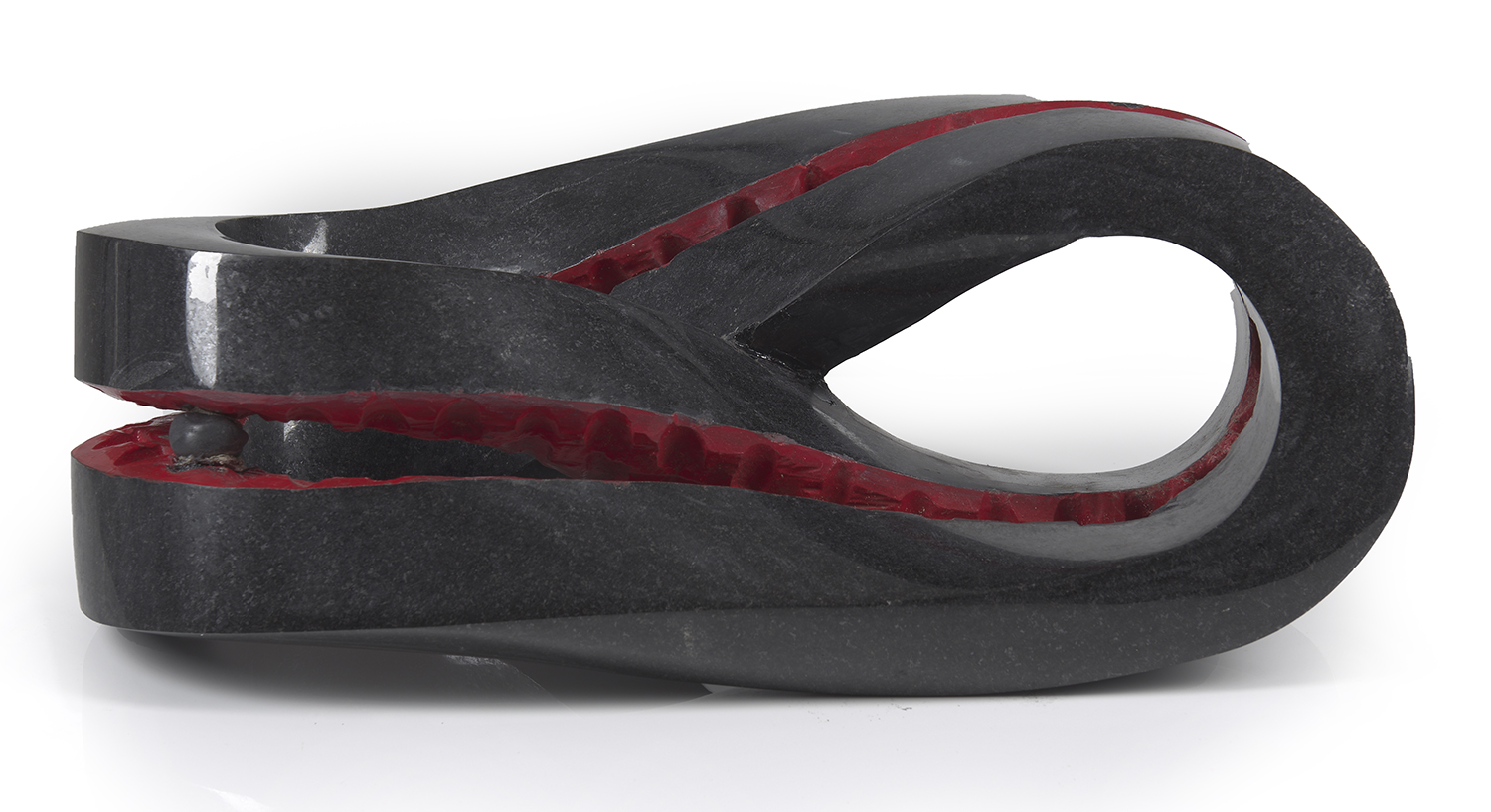 The item is in fair condition. It has had previous repair, with sealant visible. The work is now stable and self-standing.