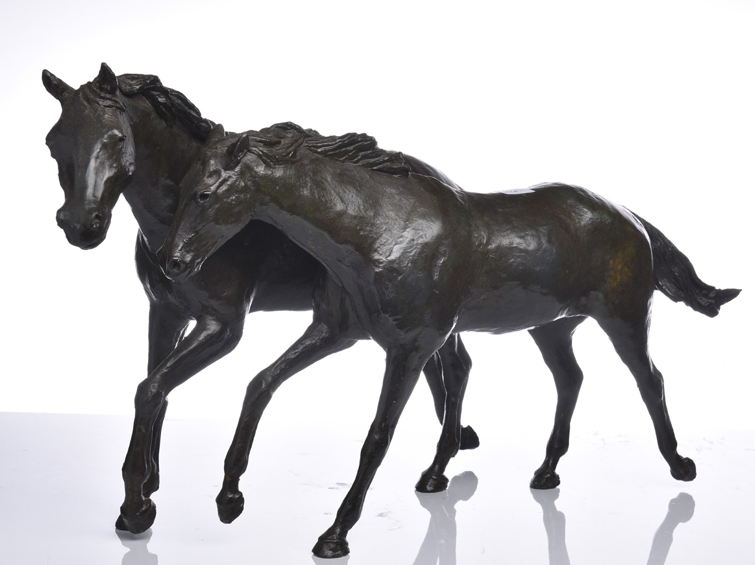 A BRONZE FIGURE OF TWO HORSES, SIGNED TO UNDERSIDE W.52CM, LEONARD JOEL LOCAL DELIVERY SIZE: SMALL