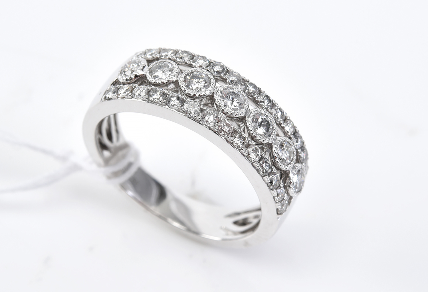 A PAIR OF DIAMOND DROP CIRCLET EARRINGS - Each earring featuring round brilliant cut diamonds totalling 0.96ct, in 18ct white gold.