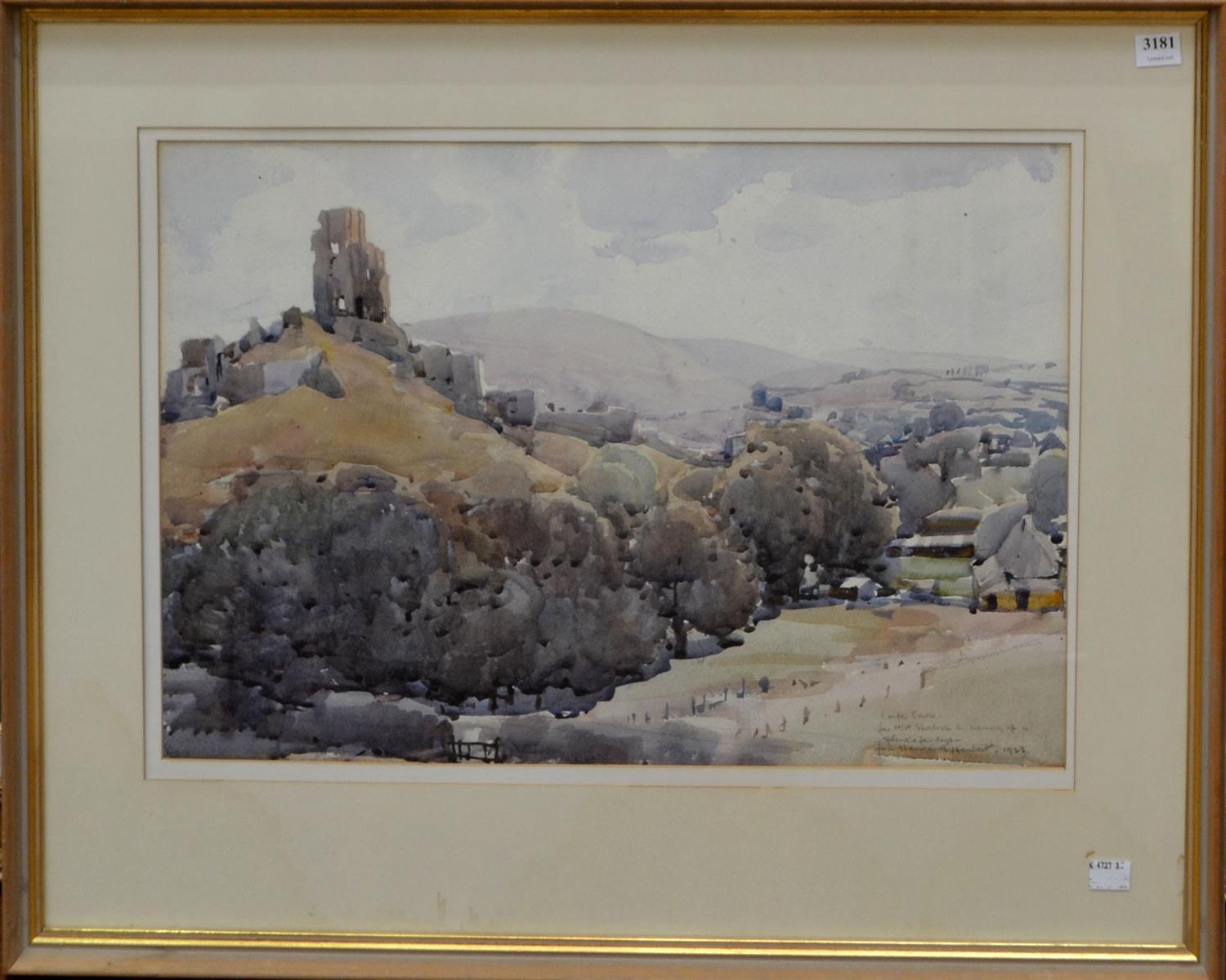 HAROLD HERBERT, CORFE CASTLE 1922, WATERCOLOUR, 34 X 51CM, FRAME SIZE: 55 X 70CM, CONDITION: GOOD, SLIGHT FADING WITH AGE