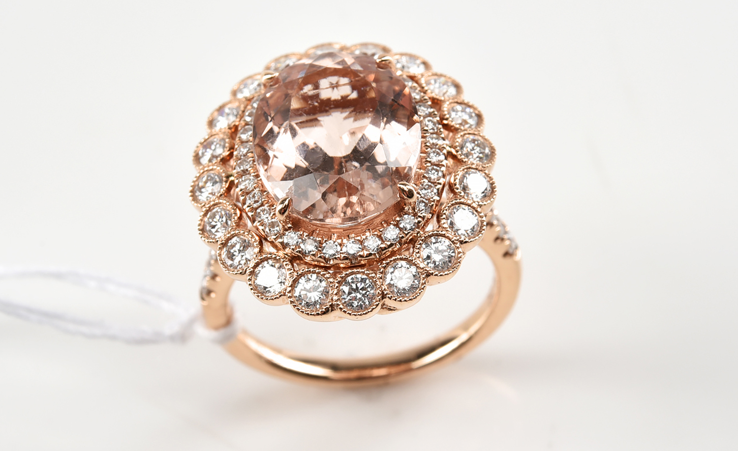 A DIAMOND RIVIERE - Comprising one hundred and five round brilliant cut diamonds totalling 15.00cts, bezel set in 14ct rose gold, to...