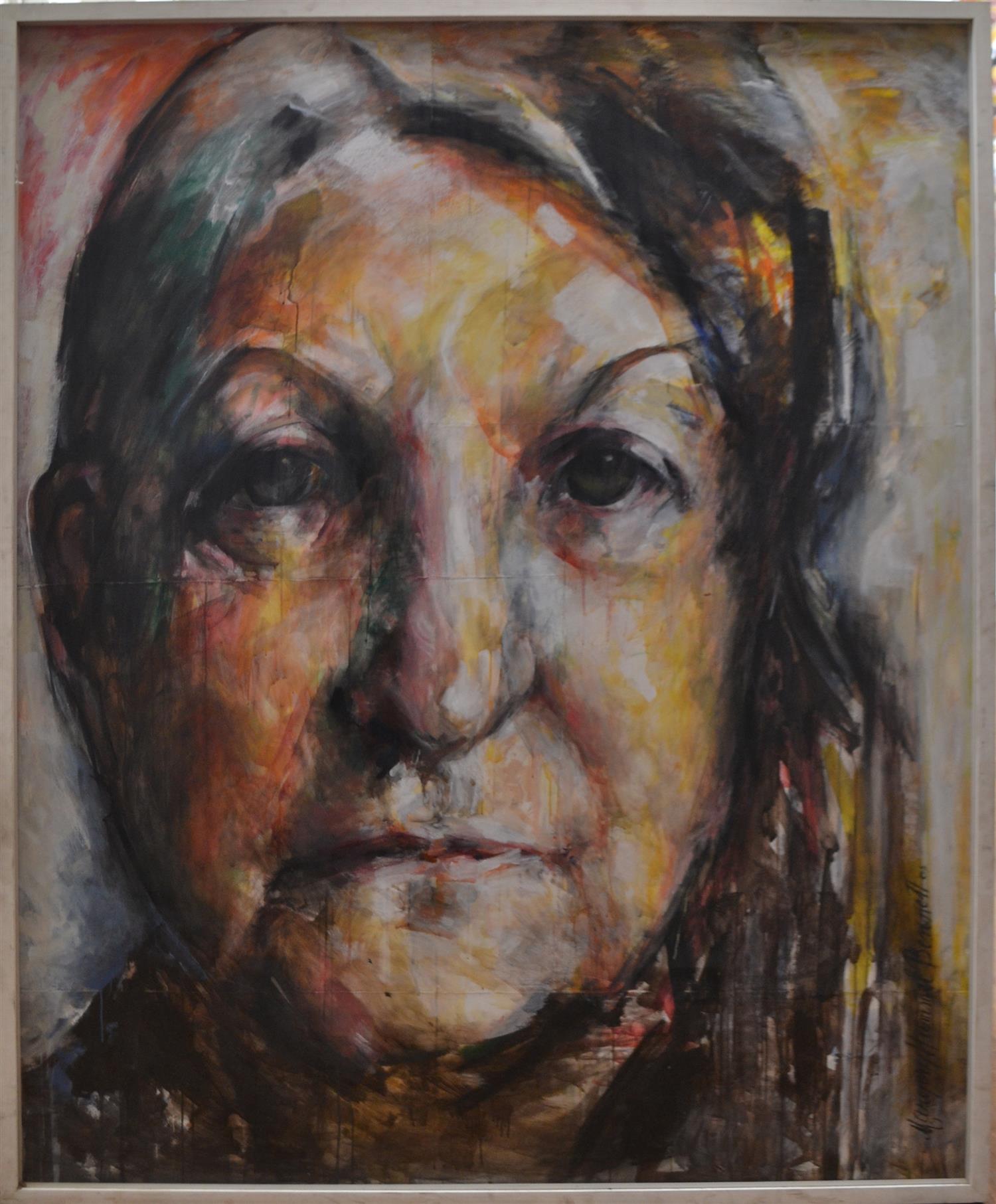 MARGARET HUMMEL BENNET, PORTRAIT (FEMALE FACE), INK AND WATERCOLOUR ON PAPER, IMAGE SIZE: 220 X 180CM, FRAME SIZE: 228 X 188CM, CONDITION: VERY GOOD, FRAME IN POOR CONDITION. BUYER'S PLEASE NOTE: DUE TO THE SIZE OF THIS WORK, THIS WORK MUST BE REMOVED BY PROFESSIONAL HANDLERS. LEONARD JOEL STAFF CANNOT MOVE THIS ITEM.
