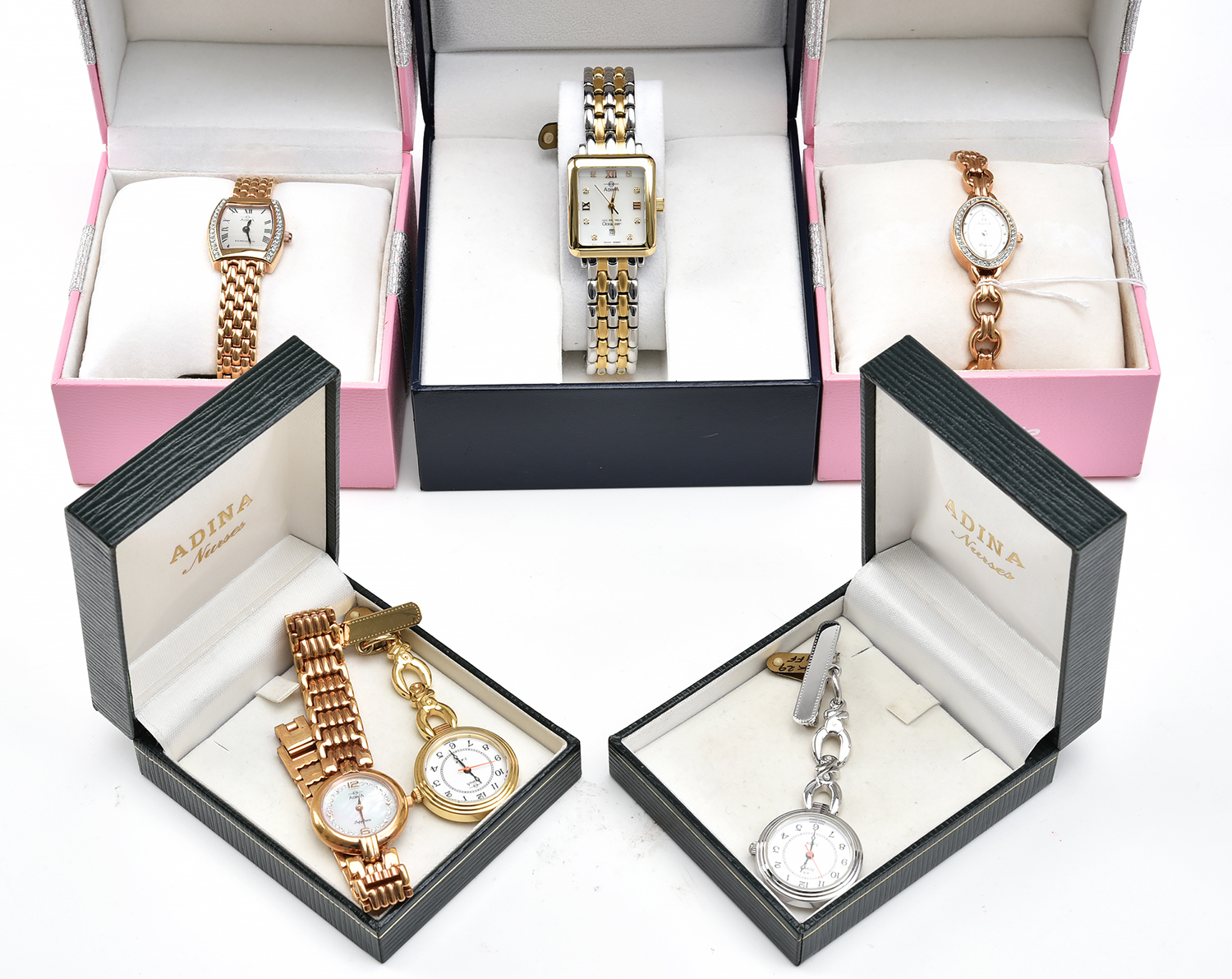 A COLLECTION OF ADINA WATCHES INCLUDING TWO NURSES WATCHES