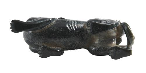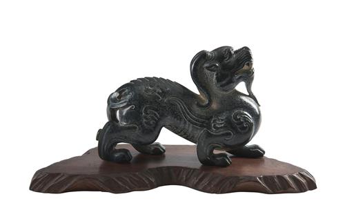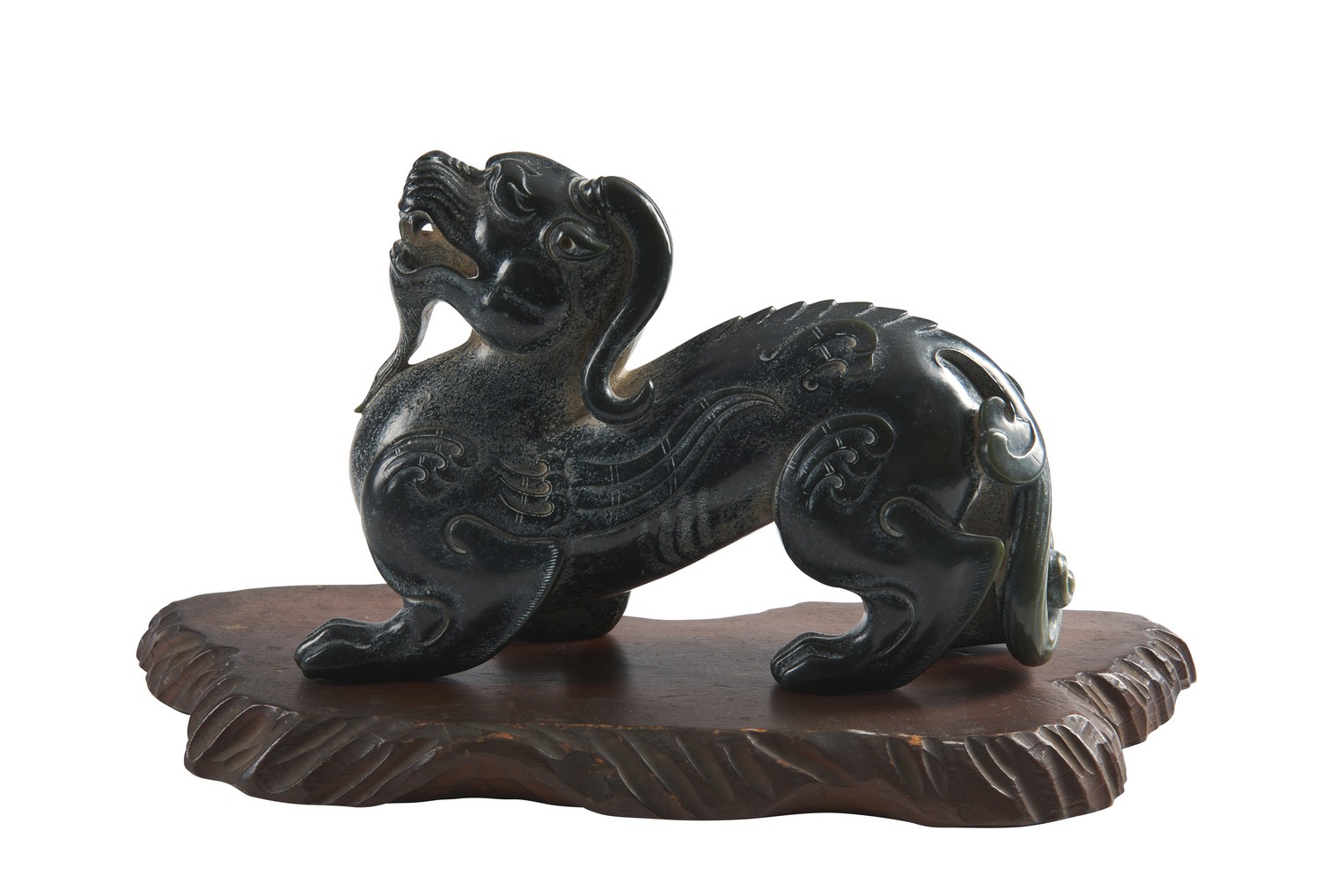 A LARGE CHINESE BLACK JADE FIGURE OF A QILONG