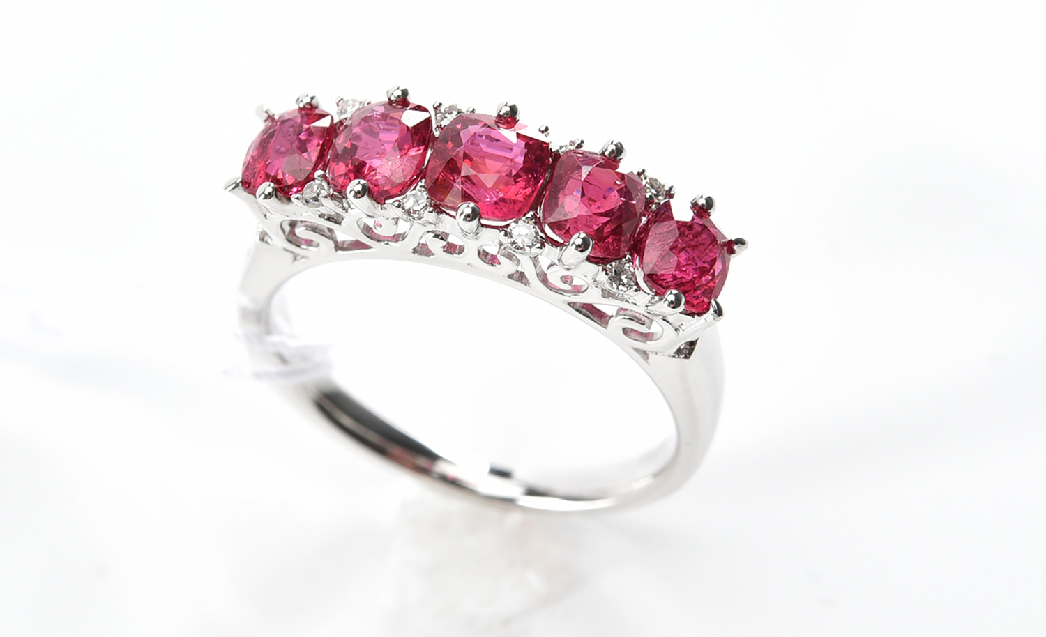 A BURMESE SPINEL AND DIAMOND DRESS RING IN 18CT WHITE GOLD, TOTAL SPINEL WEIGHT 2.10CTS,TOTAL DIAMOND WEIGHT 0.07CTS, SIZE M, 4GMS