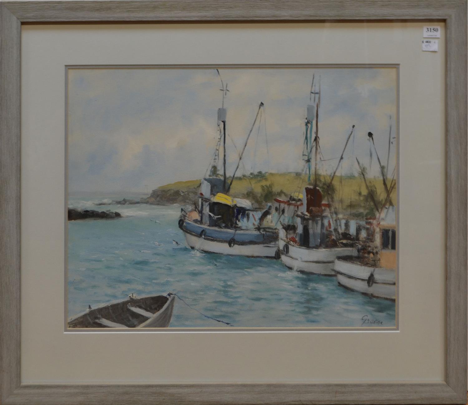 ARTIST UNKNOWN ( SIGNED GREEN), SHIPS, OIL ON CANVAS BOARD, 40 X 49CM, FRAME SIZE: 61 X 70.5CM, CONDITION: VERY GOOD