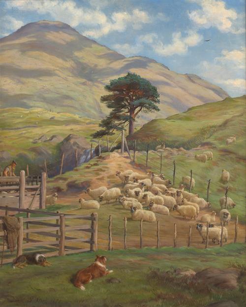 Work in very good condition. A slight slack in the canvas in seen in the upper left hand corner. Some light dust and surface blemishes seen lightly throughout, expected with age. Work well framed and ready to hang.