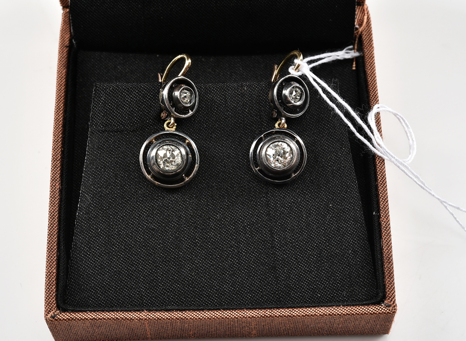 each earring set with an estimated 0.05ct and 0.25ct old European cut diamond