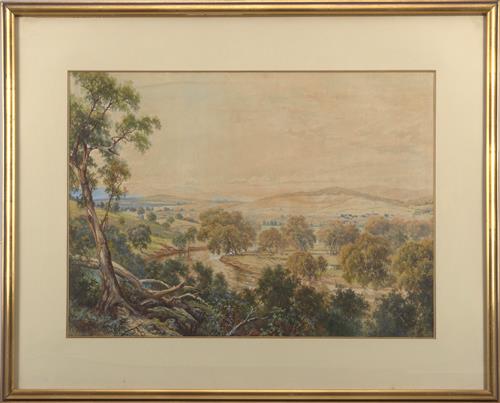 In good condition consistent with age. There is some discolouration mostly evident in the sky. There is a tear in the paper, running approximately 10cm vertically through the centre. This is only visible upon close inspection. This work has not been inspected outside of its current framing.