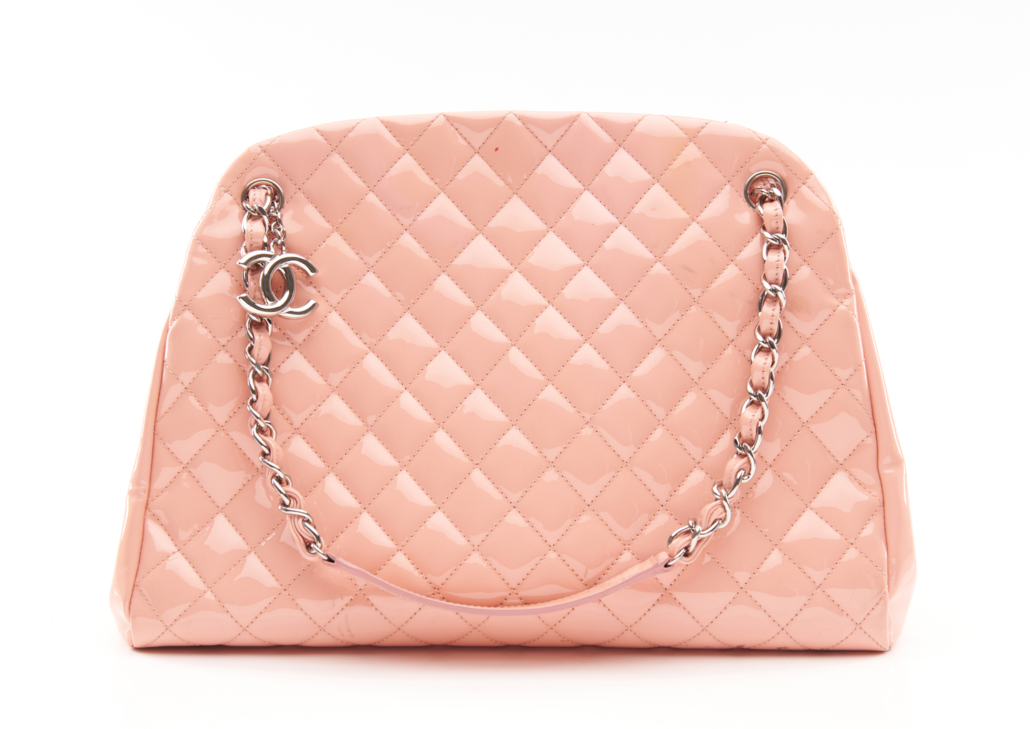 A VINTAGE TOTE BAG BY CHANEL-Styled in beige Caviar leather with gold metal hardware and chain weave strap, 22 x 28 x 6cm.