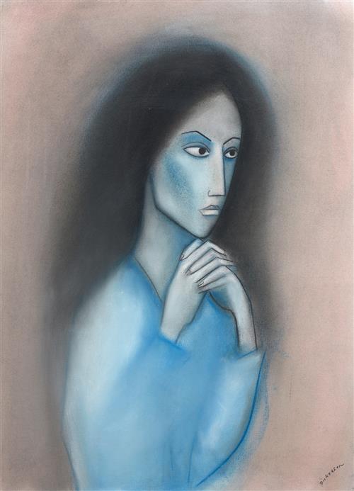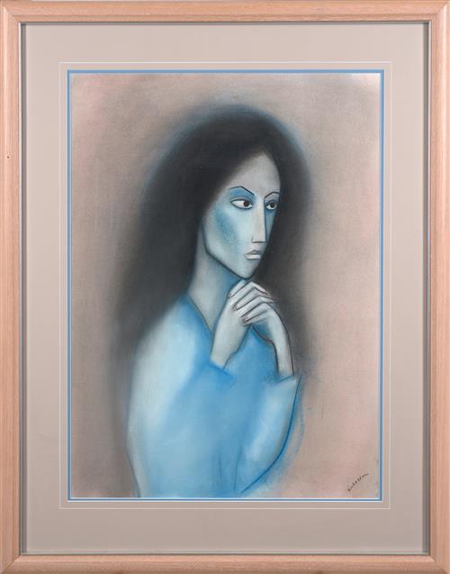 Work in very good condition. A blemish in the paper can be seen on the surface running vertically down the right hand side. Work has been inspected from outside of the frame, so it cannot be confirmed if the paper has been glued down.