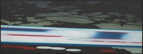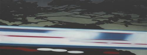 signed, dated and titled on stretcher bar verso: ANDREW BROWNE 2001 TREES AND BILLBOARD AT SPEED