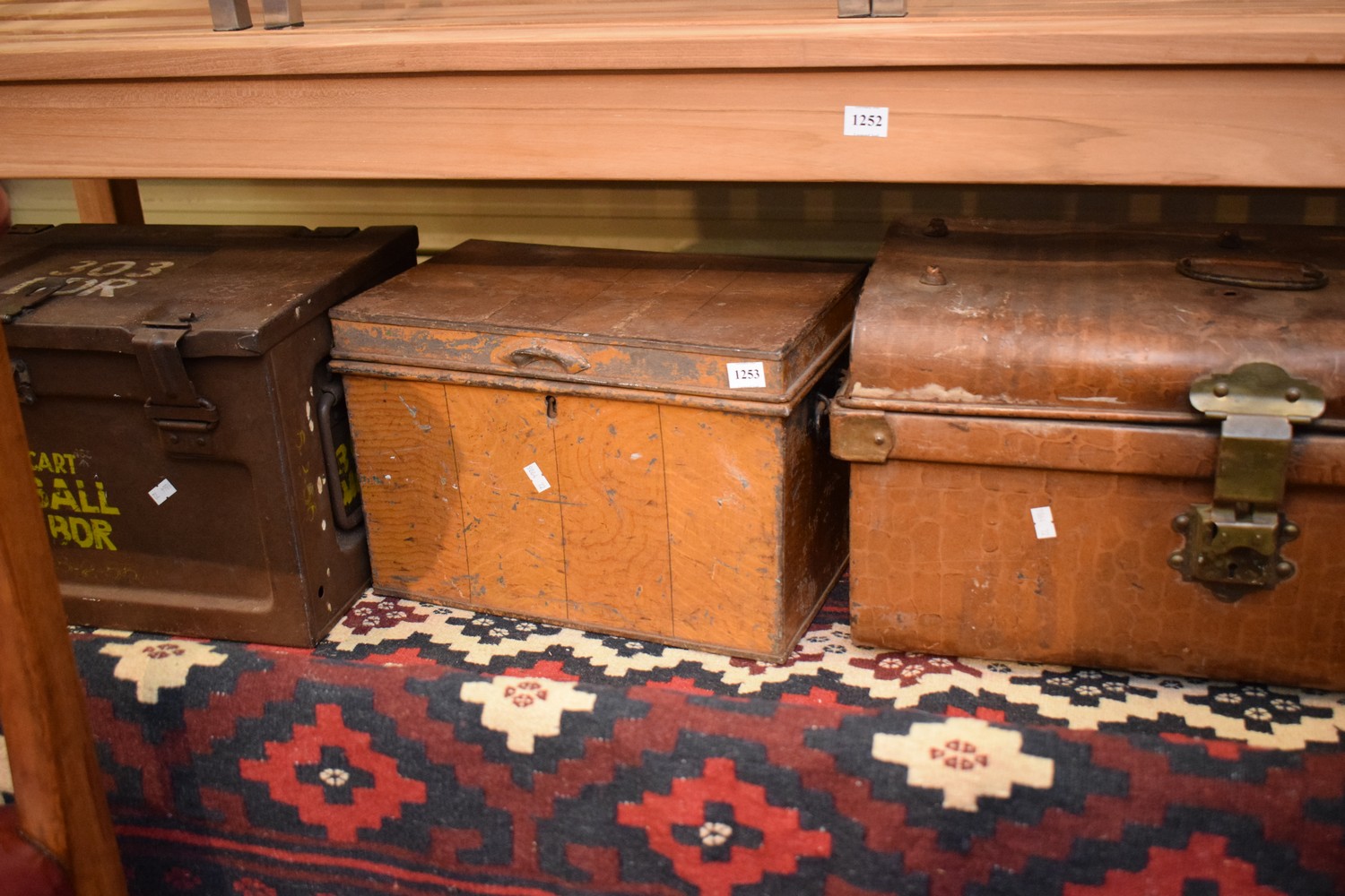 COLLECTION OF THREE VINTAGE TIN TRUNKS INCLUDING VICTORIAN AND MILITARY