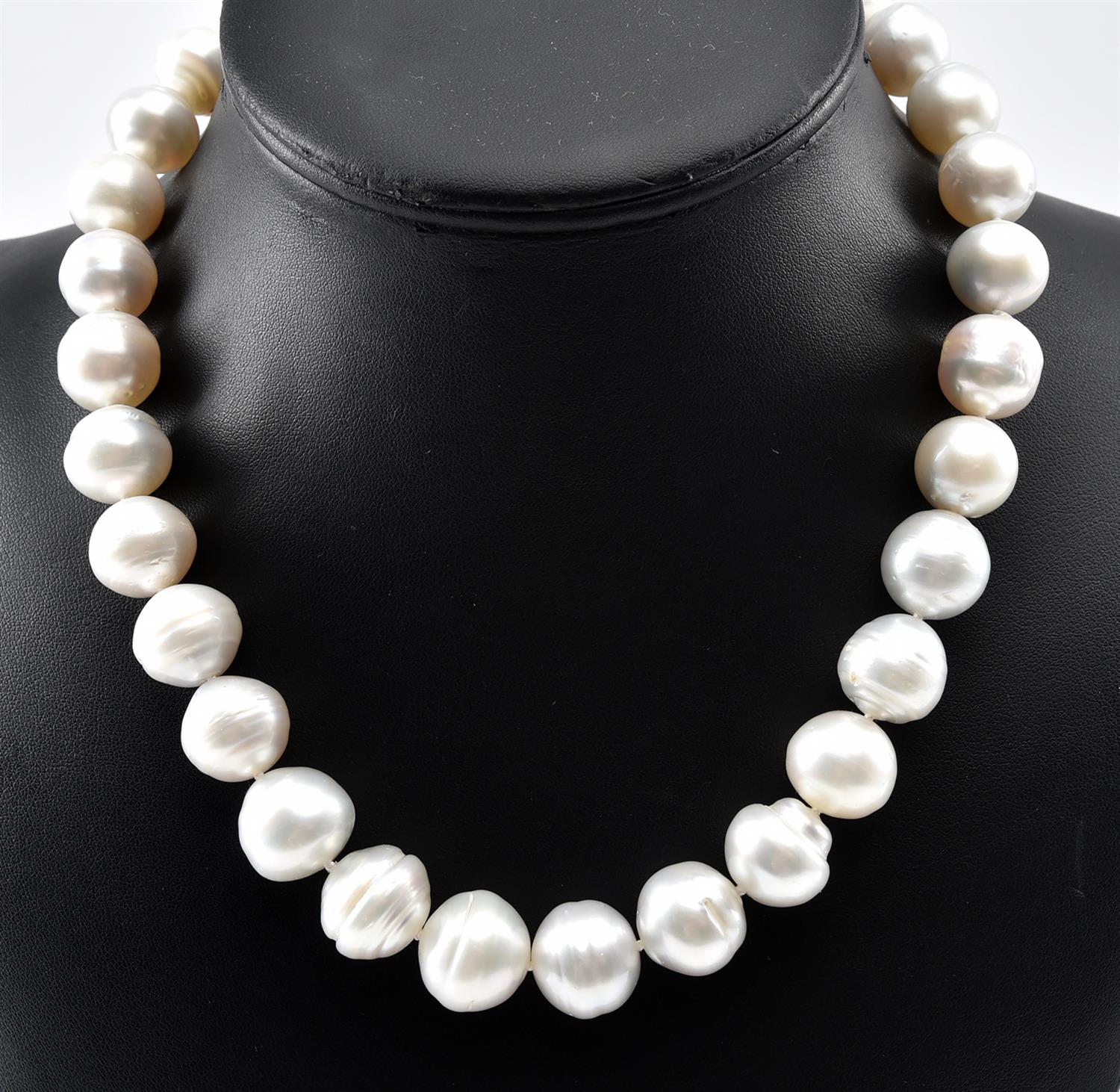 A STRAND OF BAROQUE SOUTH SEA PEARLS (13MM-16MM), TO A MAGNETIC BALL CLASP, TOTAL LENGTH 460MM