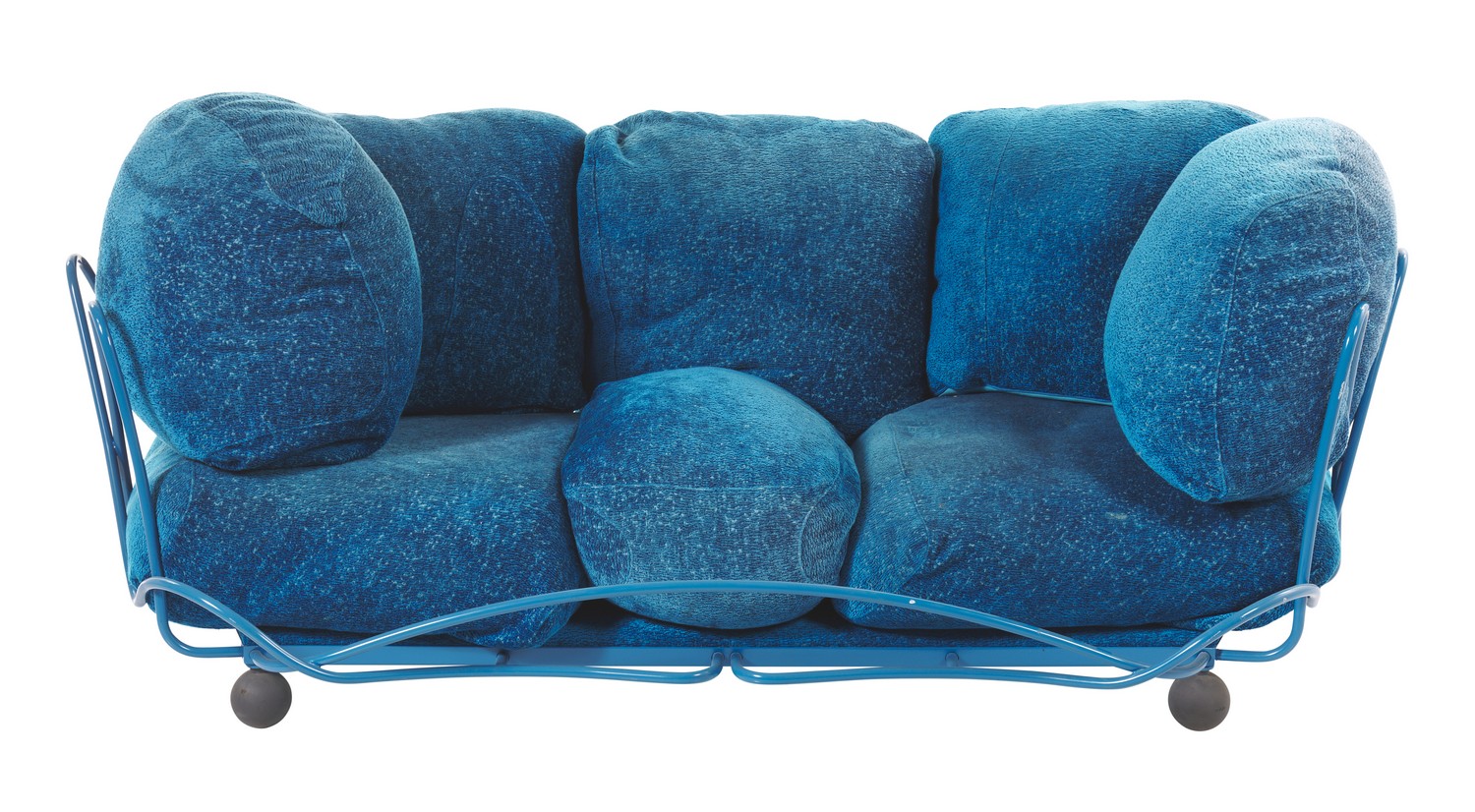 Base in good condition with some stains to upholstery. Minor marks to pillow upholstery