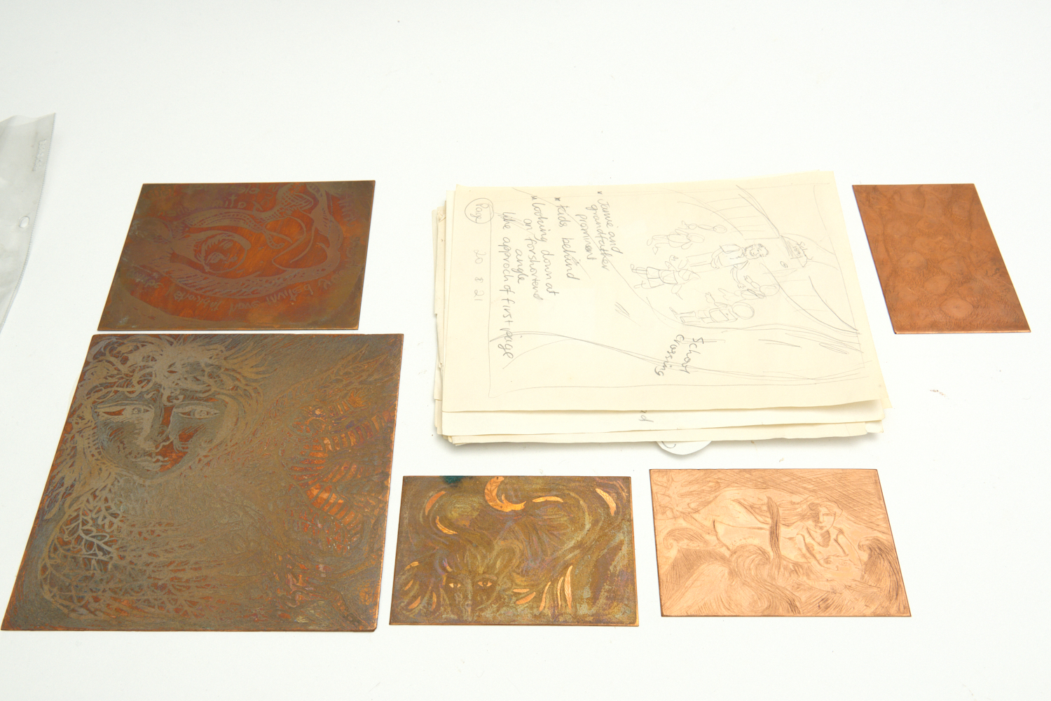 A COLLECTION OF COPPER ETCHINGS IN THE STYLE OF MIRKA MORA AND BOOK ILLUSTRATIONS
