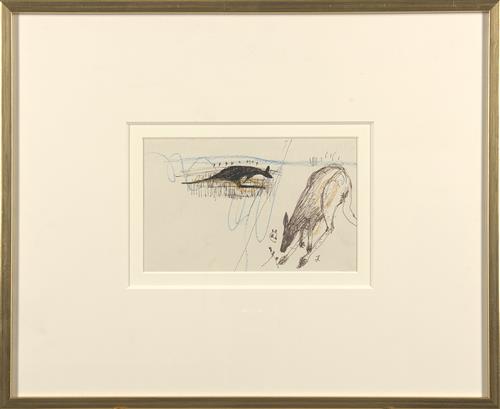 Work in very good condition, well framed with a fresh mount. One small dot of foxing is seen lower right edge (half hidden under the mount).