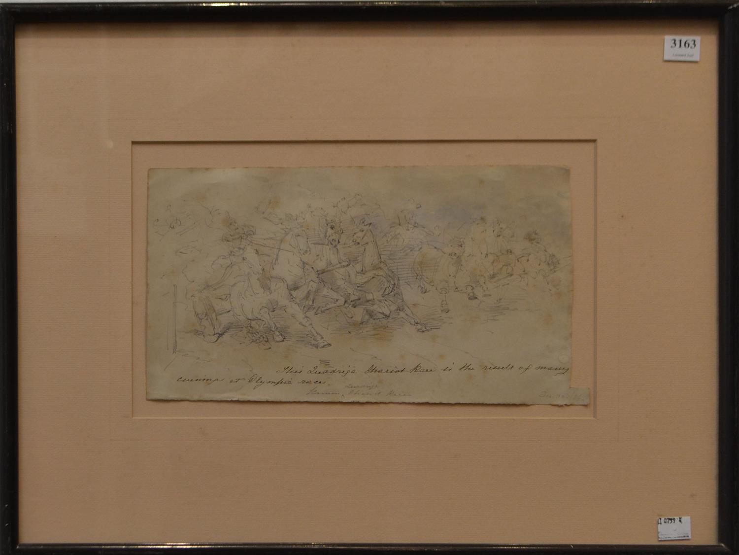WILLIAM STRUTT, CHARIOT RACE, INK, 17 X 30.5CM,