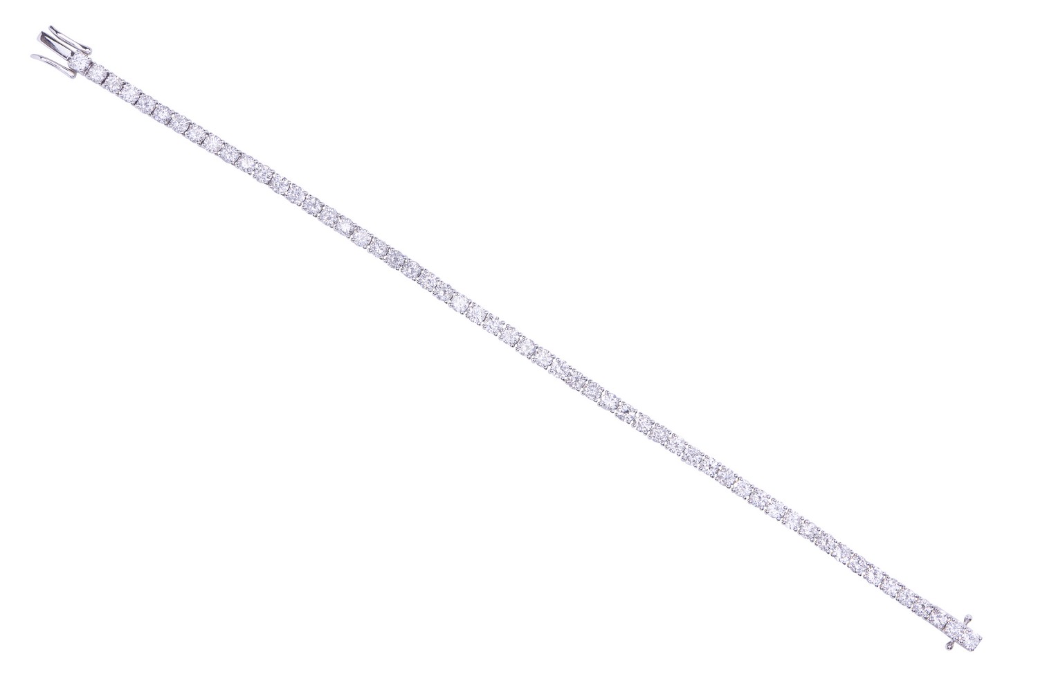 A DIAMOND LINE BRACELET COMPRISING SIXTY NINE ROUND BRILLIANT CUT DIAMONDS TOTALLING 4.57CTS, IN 18CT WHITE GOLD, LENGTH 176MM, 5.88GMS