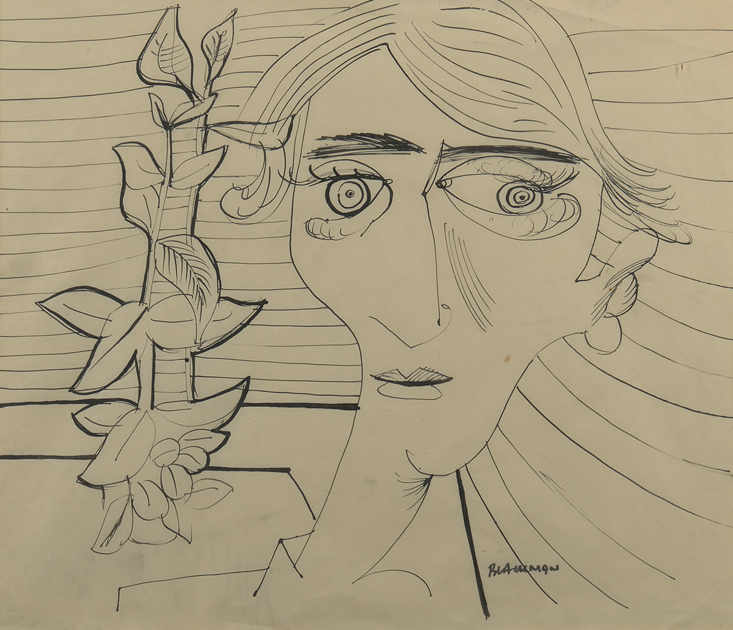 Creases are evident across the work, with the most significant sitting (10cm in length) running horizontal in the top right hand corner. Other light imperfections on the papers surface are detected along with one spot of foxing in the center right (left to the subjects lip).