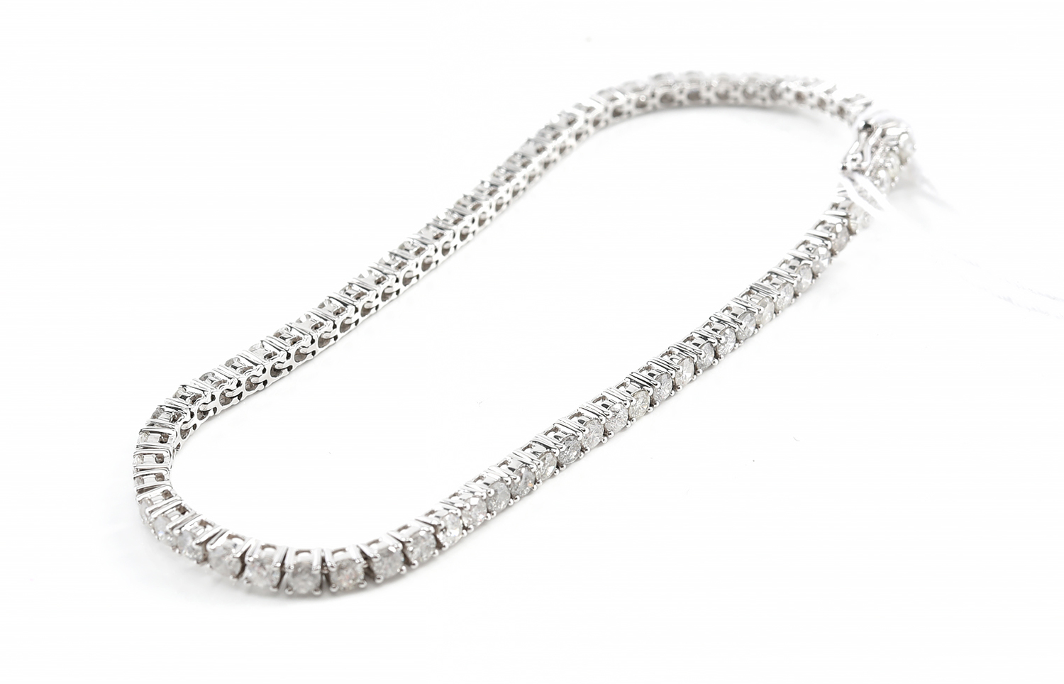 A DIAMOND LINE BRACELET - Comprising a row of round brilliant cut diamonds totalling 6.74cts, in 18ct gold, total length 180mm.