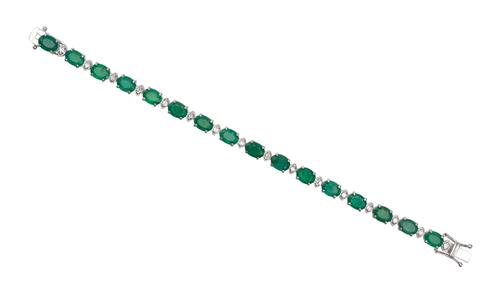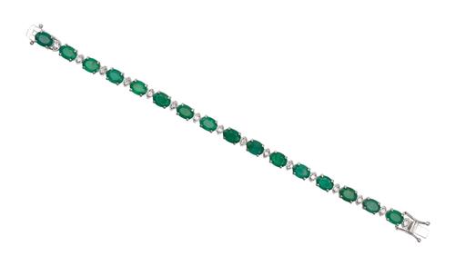 In excellent, as new condition. Emeralds are a vivid medium green colour. Set with 16 round brilliant cut diamonds - Approximate colour G-H & clarity SI.