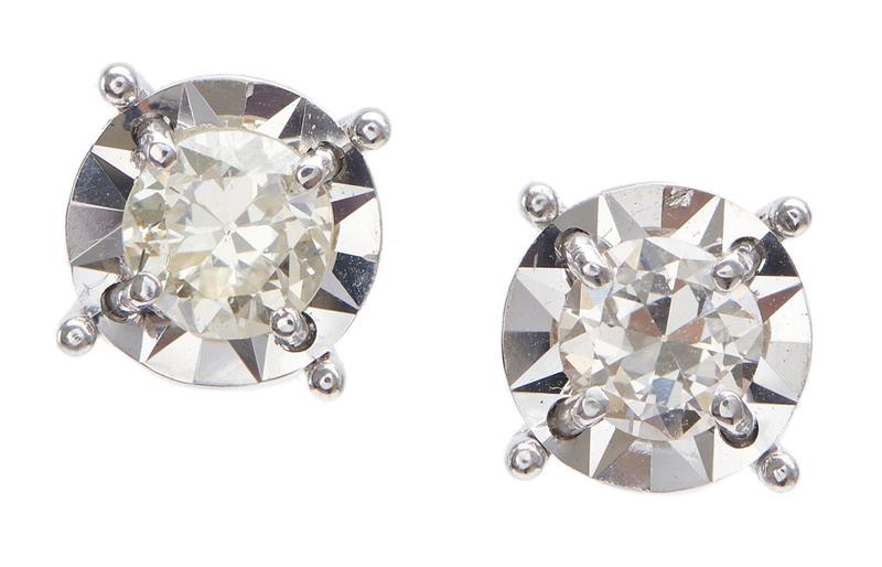 Each round brilliant cut diamond weighing 0.50cts in an illusion setting, to post and butterfly fittings, in 18ct white gold.