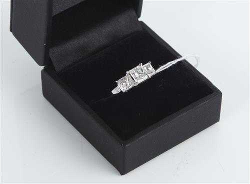 Estimated colour E-F. Estimated clarity Centre diamond VS2, side stones VS&SI2.