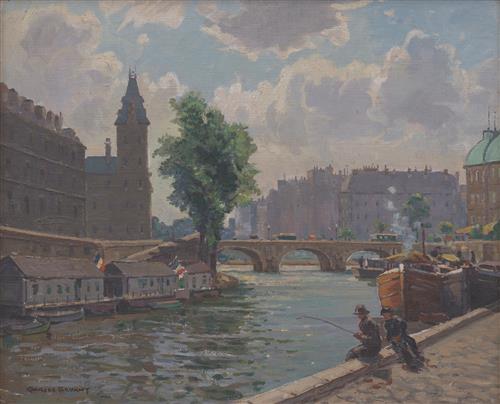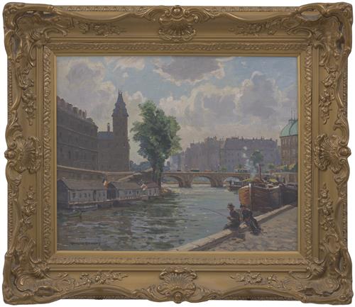 Work in very good condition given age. Some light dust and paint imperfections seen on the surface along with minimal fly spotting also. Work is well framed and ready to hang.