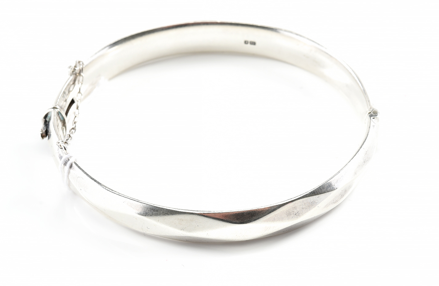 A HINGED BANGLE IN STERLING SILVER, HALLMARKED LONDON, CIRCA 1927 - 1928, G.J. LD M.K. & CO.