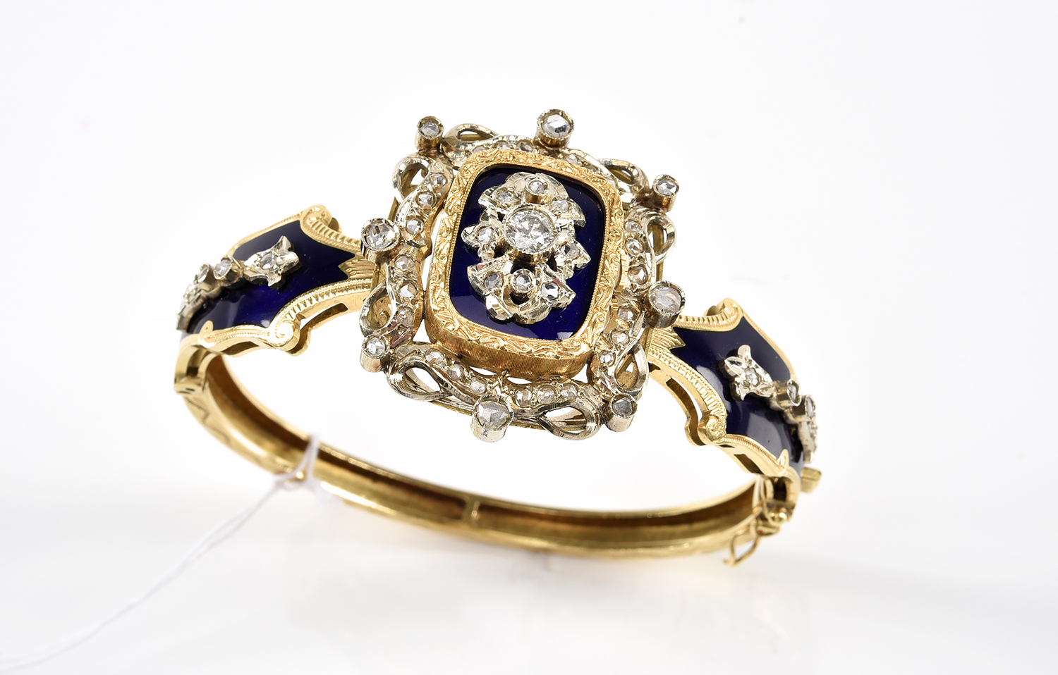 The bracelet presents in very good condition overall with enamel intact and in good order and diamonds secure. 43.75 grams.