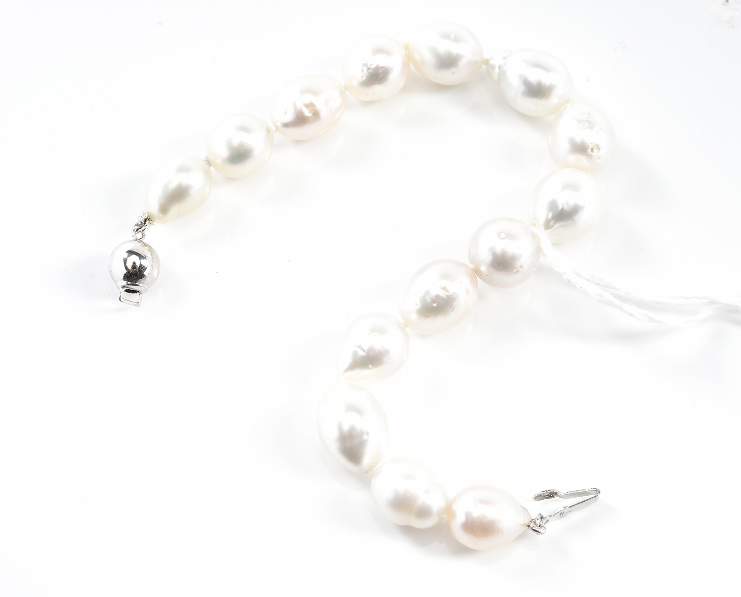 A BAROQUE SOUTH SEA PEARL BRACELET TO A SILVER CLASP, TOTAL LENGTH 190MM