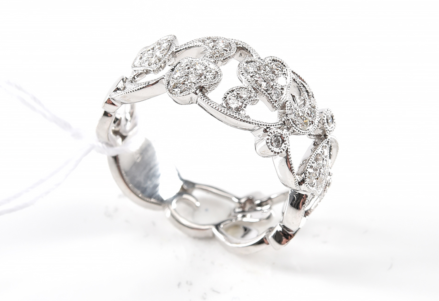 A DIAMOND DRESS RING IN 18CT WHITE GOLD, SIZE N, 4.8GMS