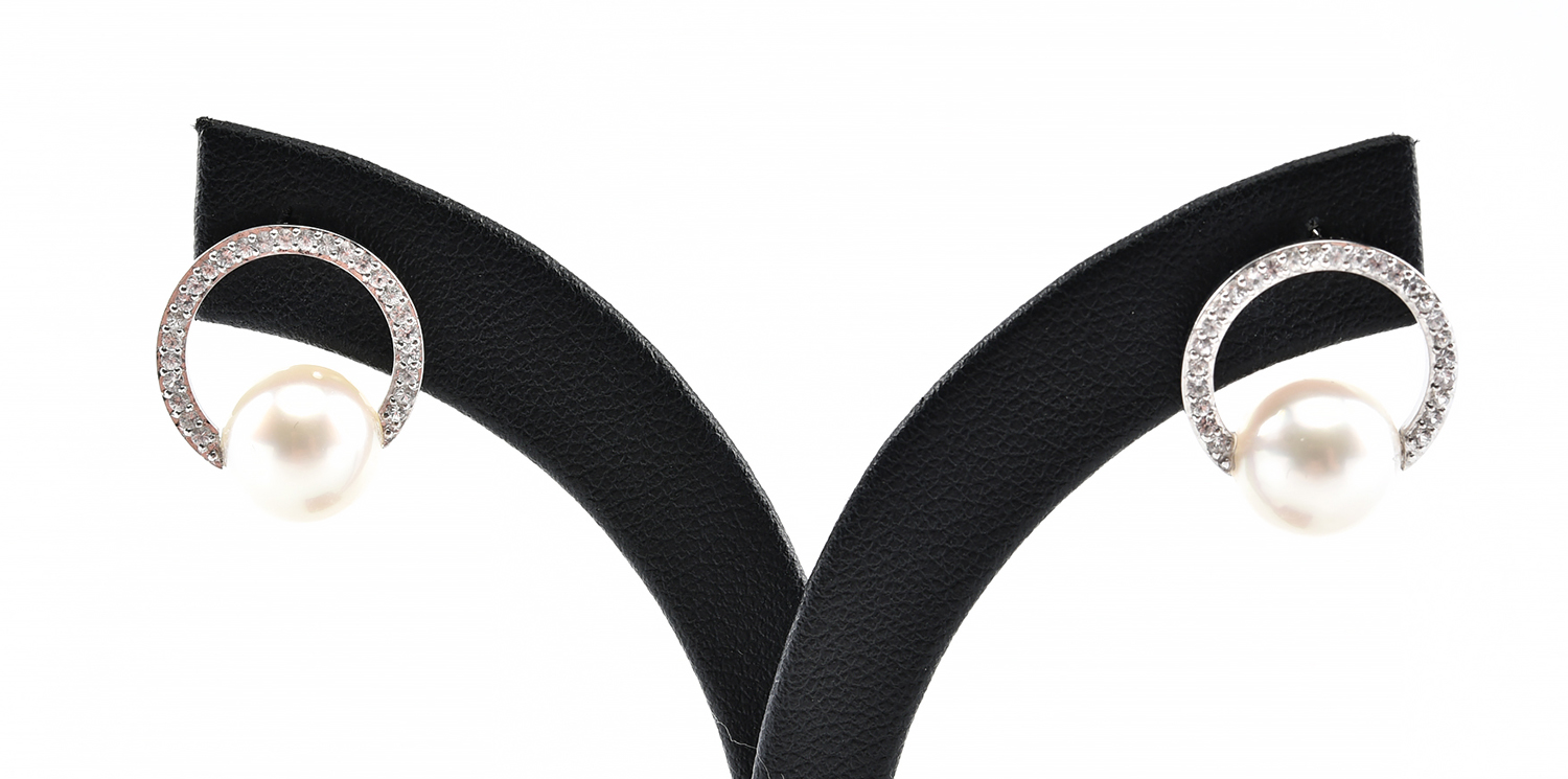 A PAIR OF SOUTH SEA PEARL AND DIAMOND EARRINGS IN STERLING SILVER