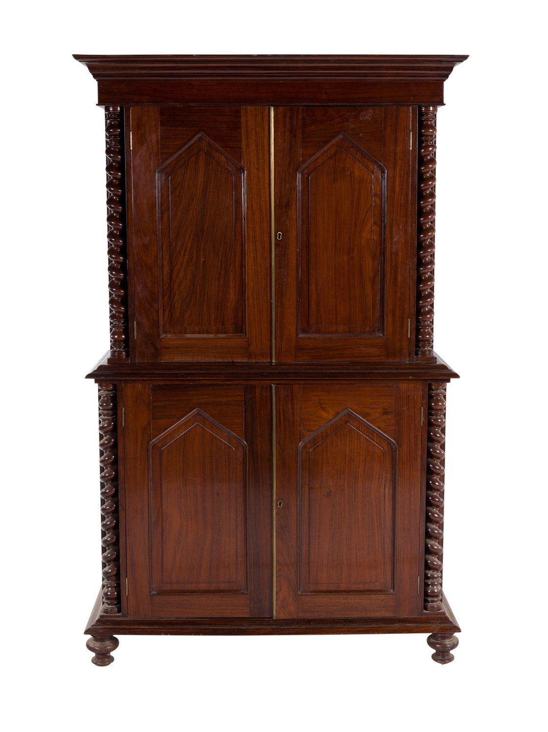 AN IMPRESSIVE ANGLO-CEYLONESE TEAK BREAKFRONT ARMOIRE 19TH CENTURY