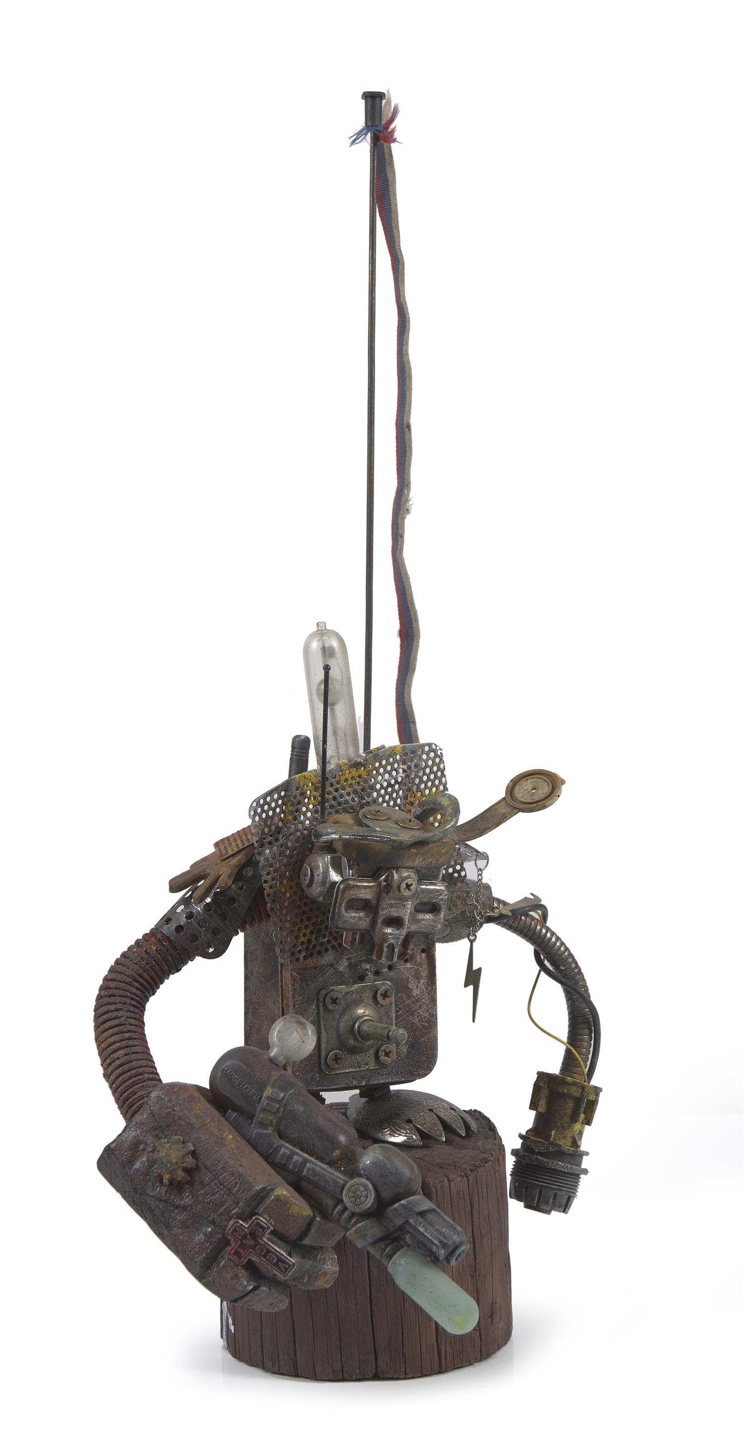 This work is in good condition with no apparent faults. As the medium is a collection of found objects, there are inherent faults within these mediums that would have been apparent at the time of creation.