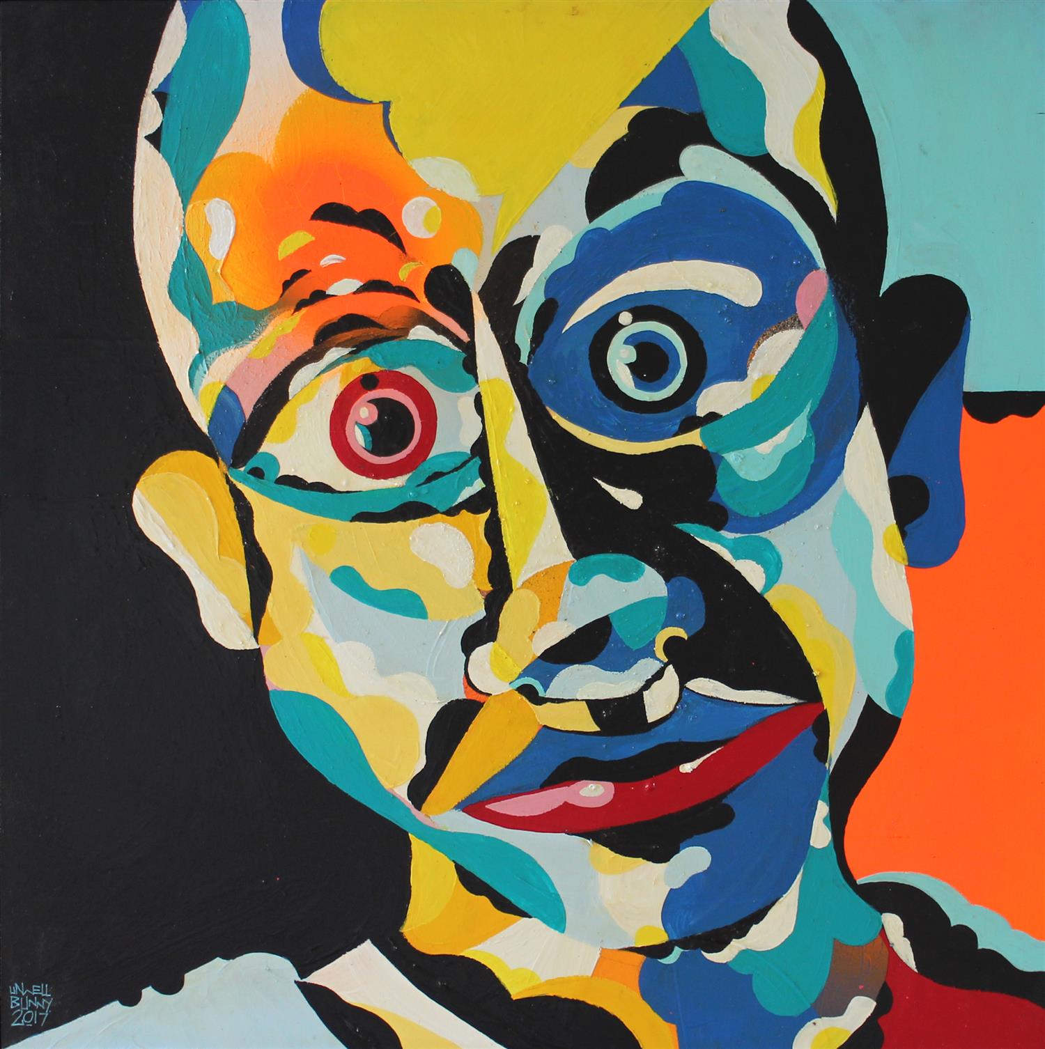 There are signs of surface dust and some surface marks on the paint surface. There are some signs of cracking around the left eye. The work is framed and ready to hang.