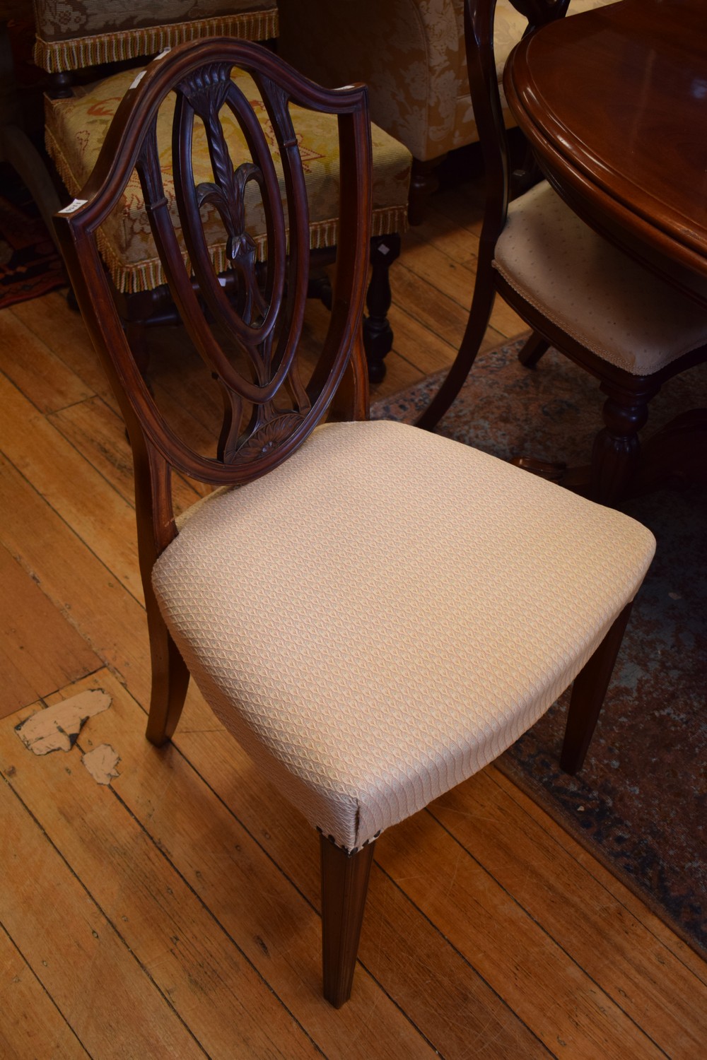 A HEPPLEWHITE MAHOGANY SHIELD BACK DINING CHAIR