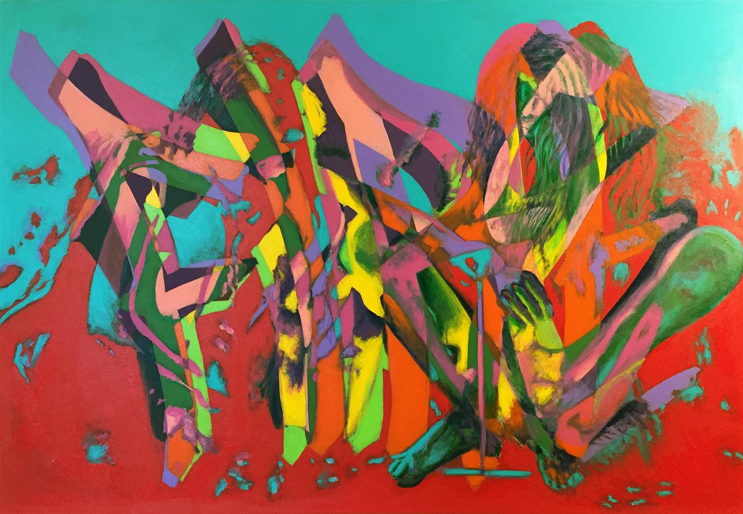 "This canvas is a tribute to the movie that has the same title, directed by Jean Jacques Annaud (released in 1981). I had started it just before the bushfires in Australia, as fire was very important in the survival of humanity in Prehistoric times. The movie is one of the reasons today I am fascinated with archeology in general. By the time I finished the painting and when the fire hit international news, and the smoked reached as far as Chile. I was totally bummed out as I immediately understood now, as a species, we are actually going backwards, yet many are still in denial of the hard truth." - The Artist -
