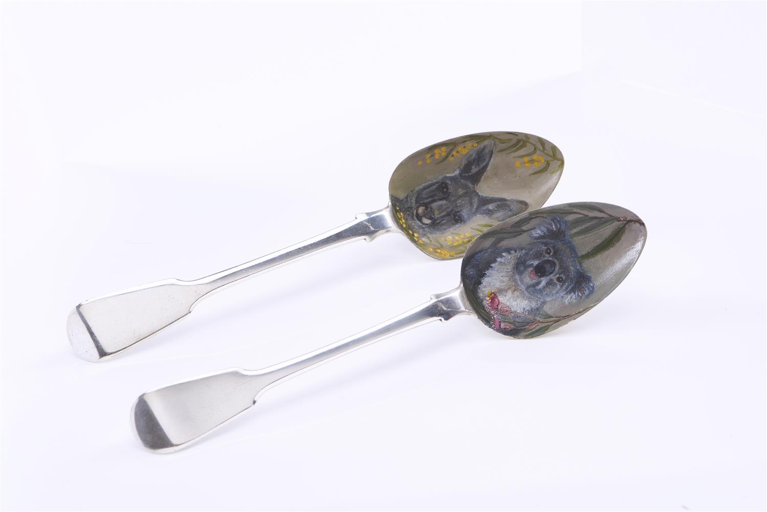 PAIR OF STERLING SPOONS PAINTED BY ROBYN RICH