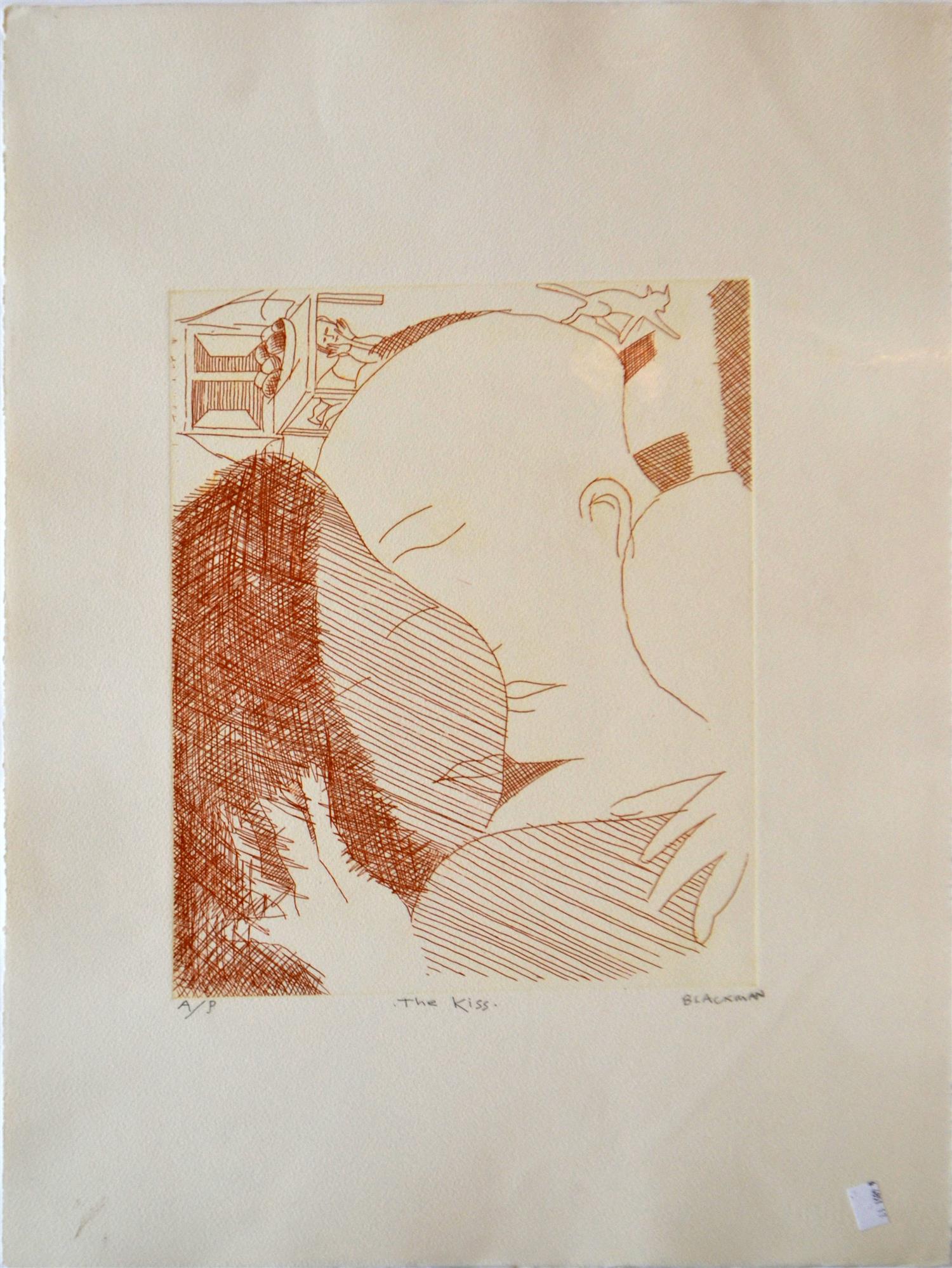 CHARLES BLACKMAN, THE KISS, ETCHING A/P, 38 X 30CM SHEET SIZE: 70 X 52CM