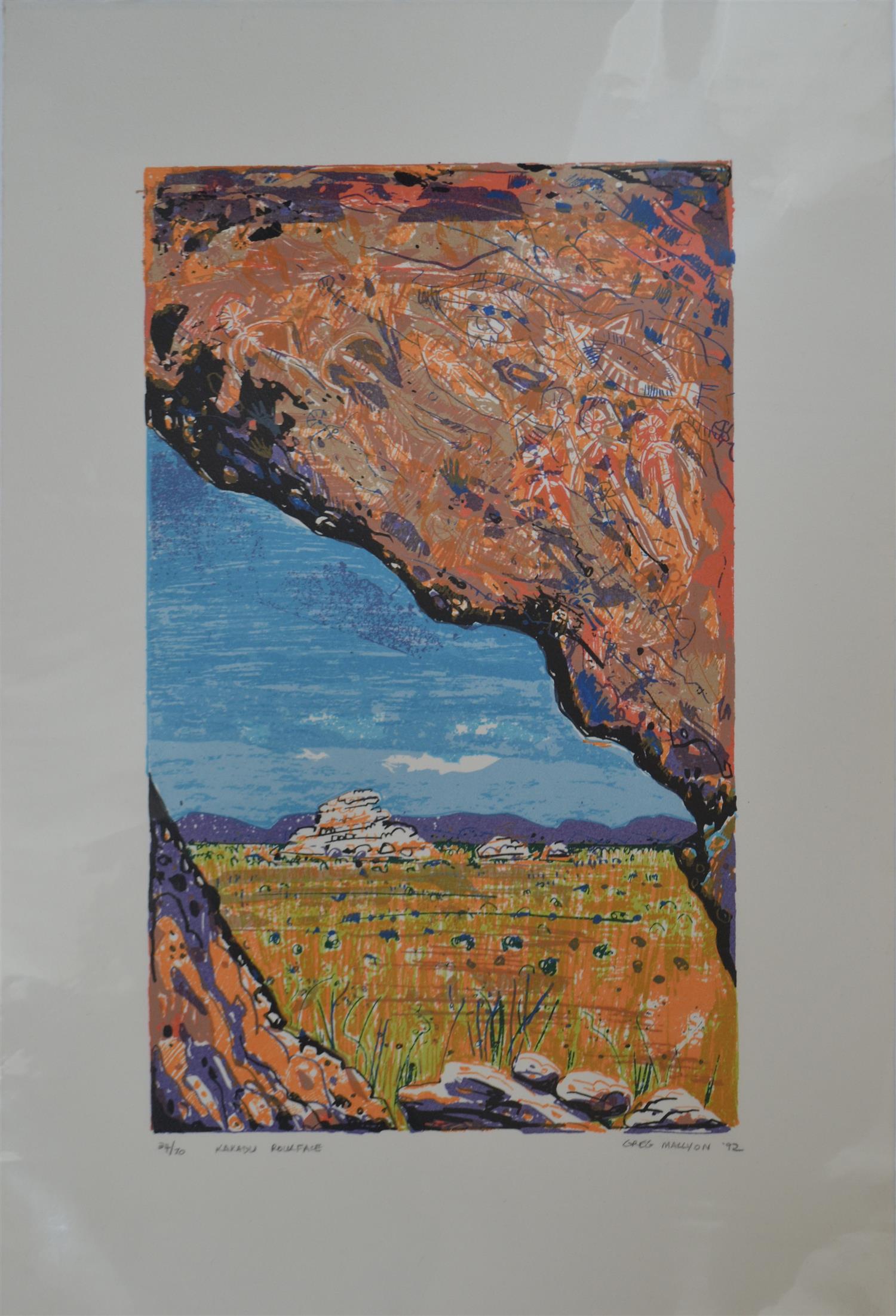 GREG MALLYON, KAKADO ROCK FACE, SCREENPRINT 34/70, 40 X 24CM SHEET SIZE: 60 X 41CM
