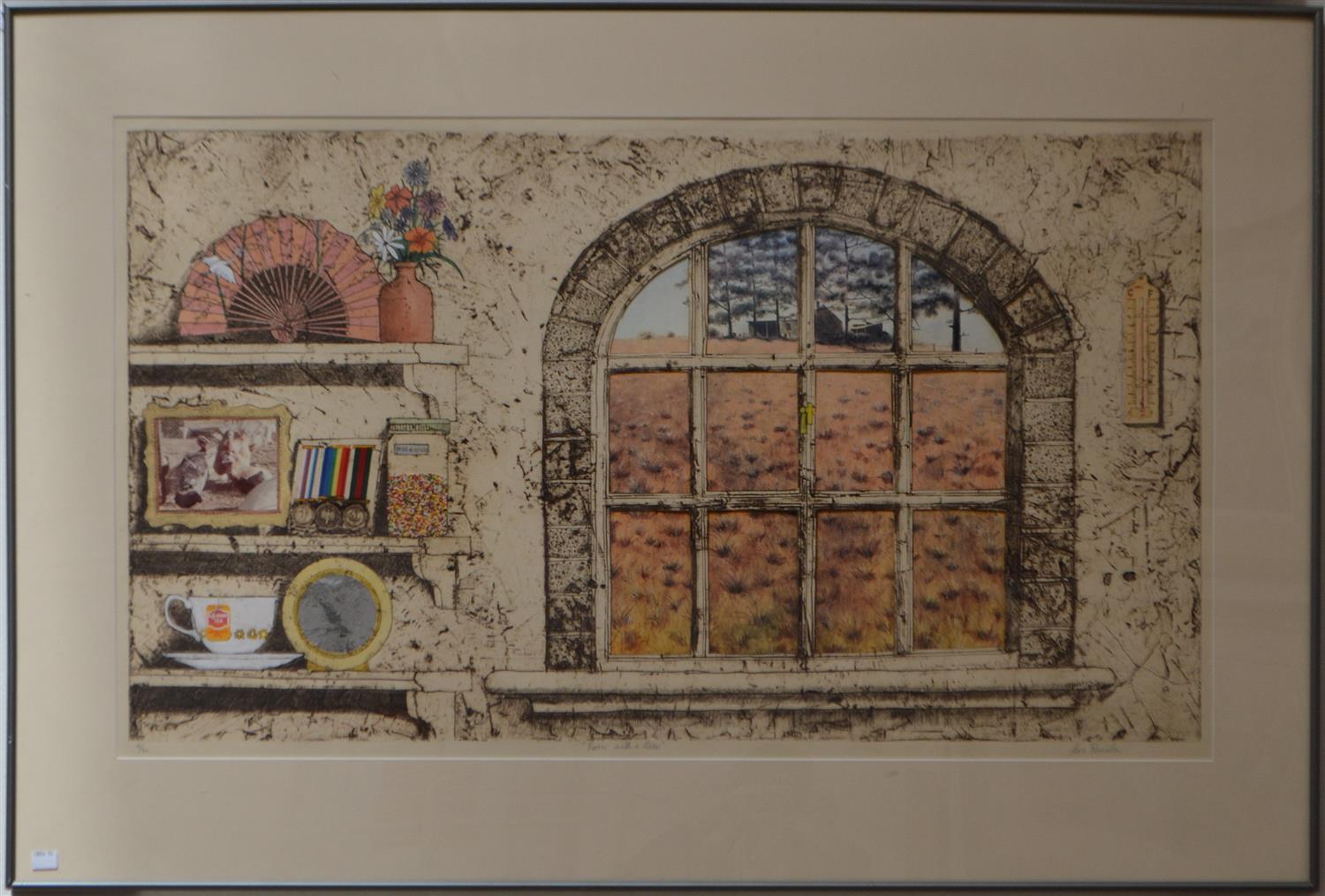LEON PERICLES, ROOM WITH A VIEW, LITHOGRAPH AND MIXED MEDIA 4/80, 55 X 97.5CM FRAME SIZE: 80 X 120CM, CONDITION: SCRATCHES TO PERSPEX