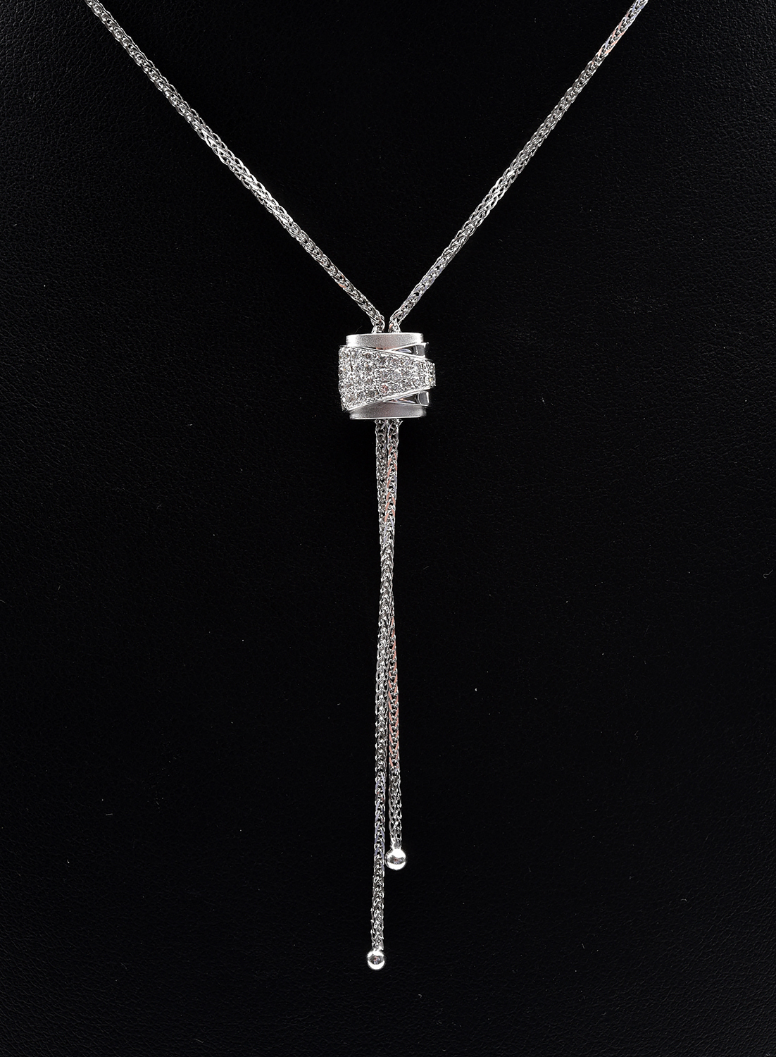 A DIAMOND SET PENDANT NECKLACE IN 18CT WHITE GOLD, 6.6GMS