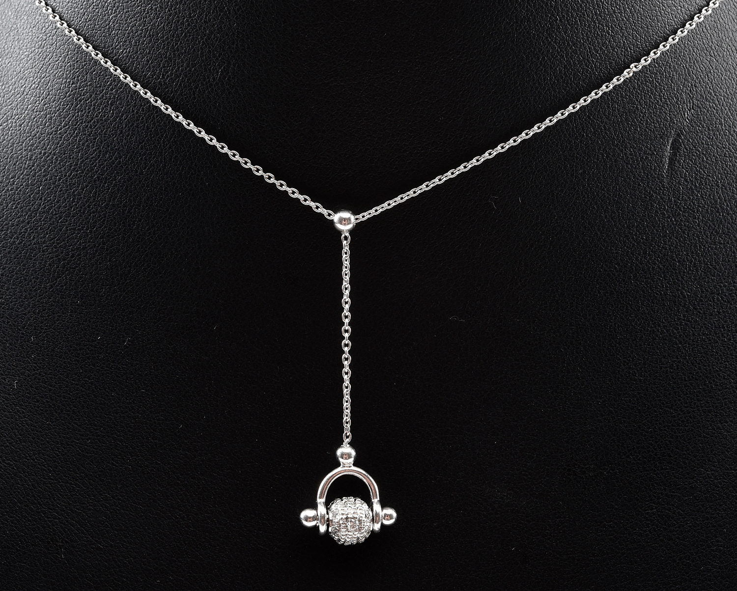 A NOVELTY DIAMOND PENDANT TO A FINE TRACE CHAIN IN IN 18CT WHITE GOLD, LENGTH 41CMS, 4GMS