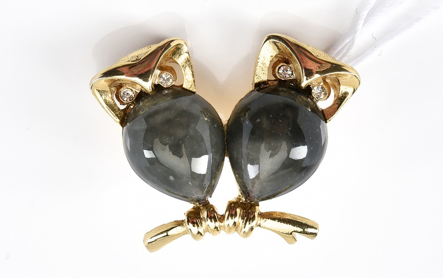 TWO OWLS SITTING ON A BRANCH BROOCH, BY TRIFARI