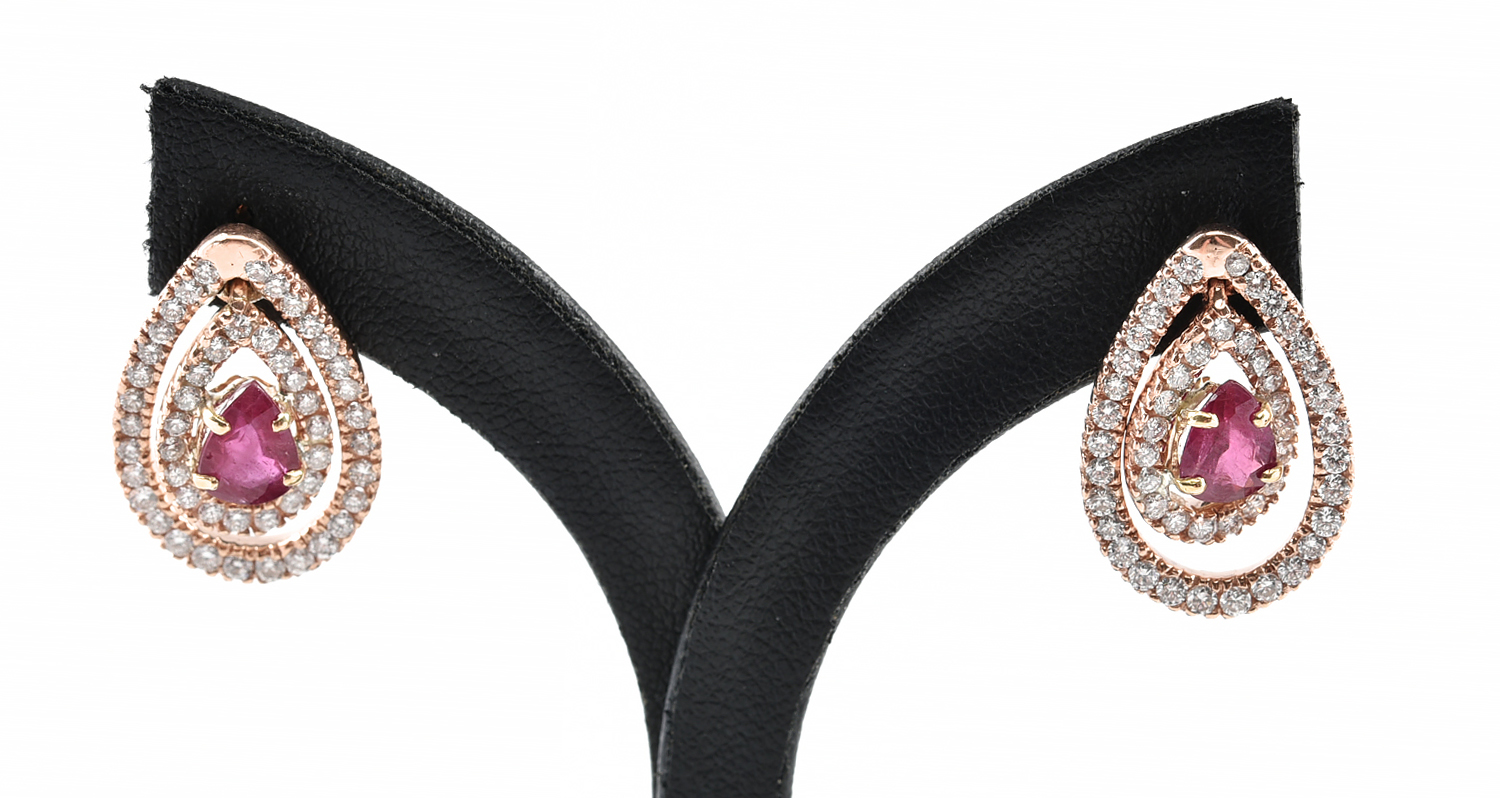 A PAIR OF RUBY AND DIAMOND EARRINGS IN TWO TONE 18CT GOLD